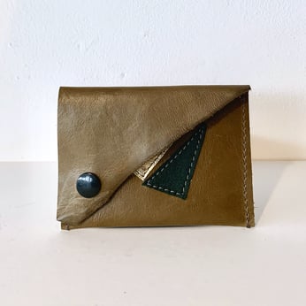 Olive Green, Forest Green & Gold Leather Card Case/ Business Card Holder