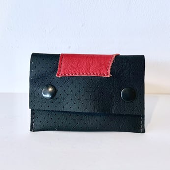 Red & Black Perforated Leather Card Case/ Business Card Holder