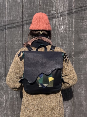 BsD Backpack Black Leather with leather remnant collage
