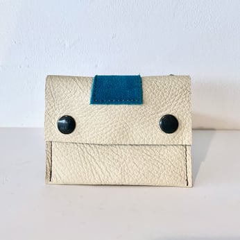 Off-white, Turquoise & Olive Green Leather Card Case/ Business Card Holder