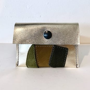 Olive Green, Forest Green & Gold Leather Card Case/ Business Card Holder
