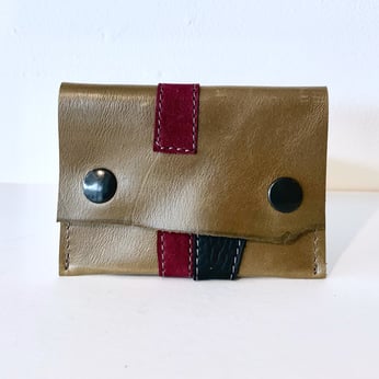Dark Olive Green, Burgundy & Black Leather Card Case/ Business Card Holder