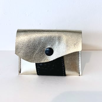 Gold & Black Wavy flap Leather Card Case/ Business Card Holder